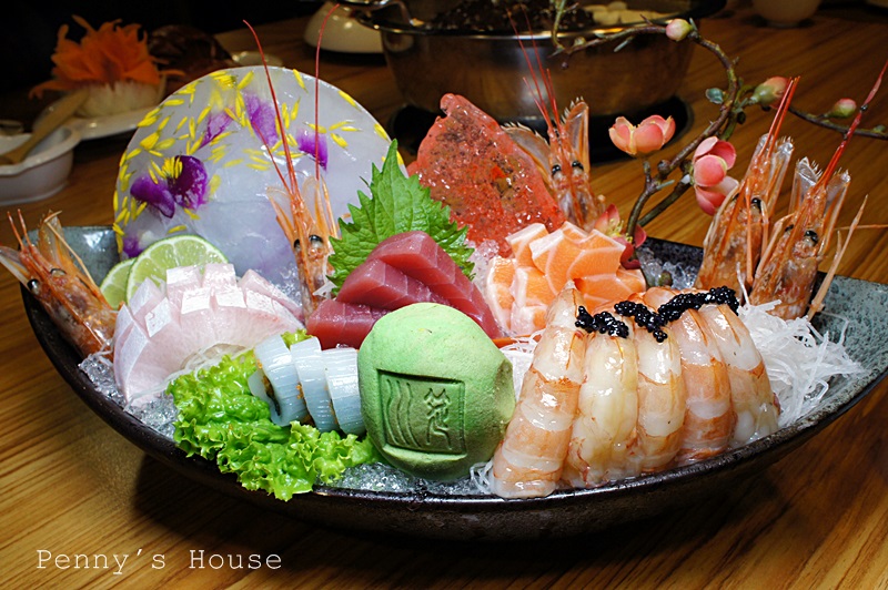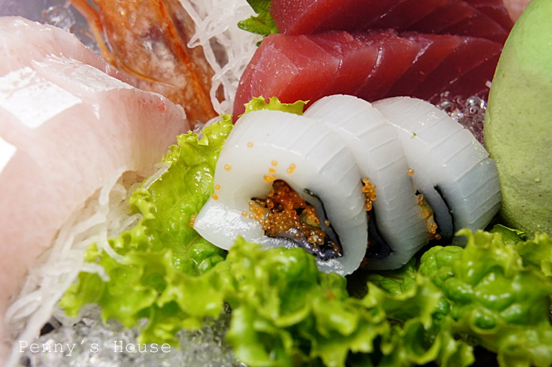 好美麗的刺身組合,一望眼就看到美麗的冰磚,實在是太費心思~ 每一樣的海鮮光用看的就可以看出油脂豐溢! 齁~不過這十人分實在是有點要打架XD |