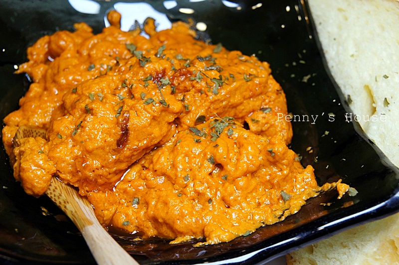 帝王蟹膏第一次品嘗,第一吃先嘗到蟹膏炒咖哩,濃濃的咖哩味雖然有點壓過蟹膏鮮味, 不過創意十足,搭配麵包也算是前菜之一。