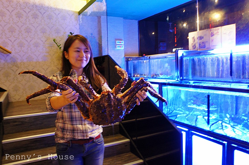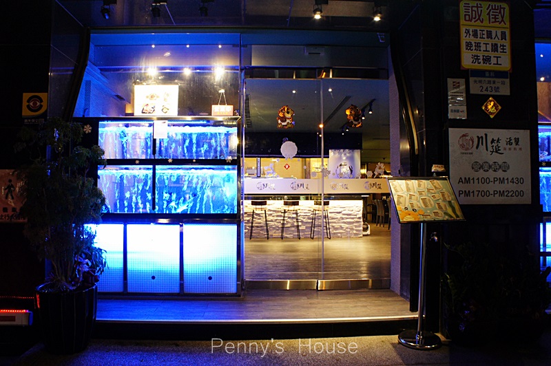 川筵活蟹在這條街上非常顯眼,也剛好就在喜來登飯店旁邊不遠處,門口擺著一堆水族箱,裡面都是活生生的帝王蟹、活魚和活蝦,這才真的是現殺海鮮呀!