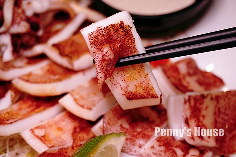 一旁的烤中捲,熟度剛剛好,Q彈又有香氣,簡單擠上檸檬就美味囉!