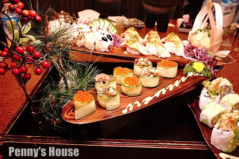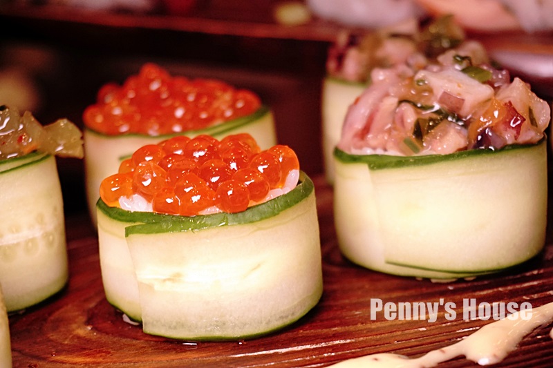 山葵花枝捲還有鮭魚子捲,加上黃瓜的爽口很搭配,