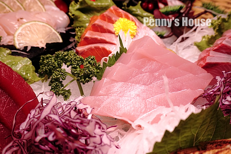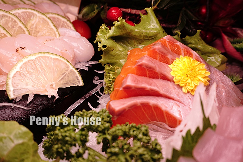 今天的魚生有:鮭魚/旗魚/紅甘/鮪魚/油魚/生干貝